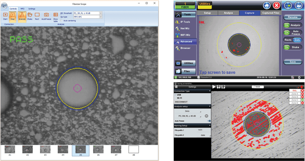 WiFi connectivity enables tether-free operation with Android or Apple iOS mobile devices including select VeEX test platforms. USB operation is available for Windows PC applications or when WiFi use is prohibited. One-touch auto-focus along with powerful host software ensures fast, reliable connector inspection and endface analysis according to relevant IEC standards.