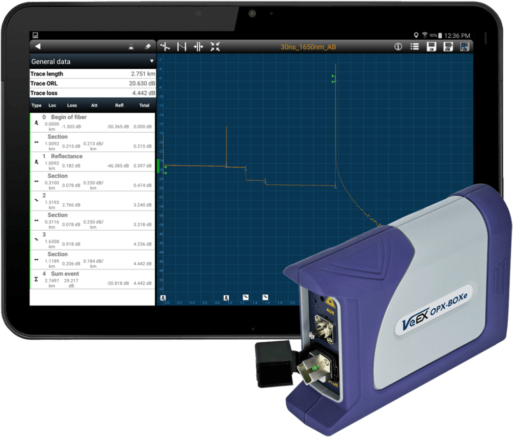 The OPX-BOXe is an ultra-compact, OTDR designed to operate remotely using Fiberizer® software. The unit can be controlled via WiFi, Bluetooth or USB from Windows, iOS, Linux or Android devices.
