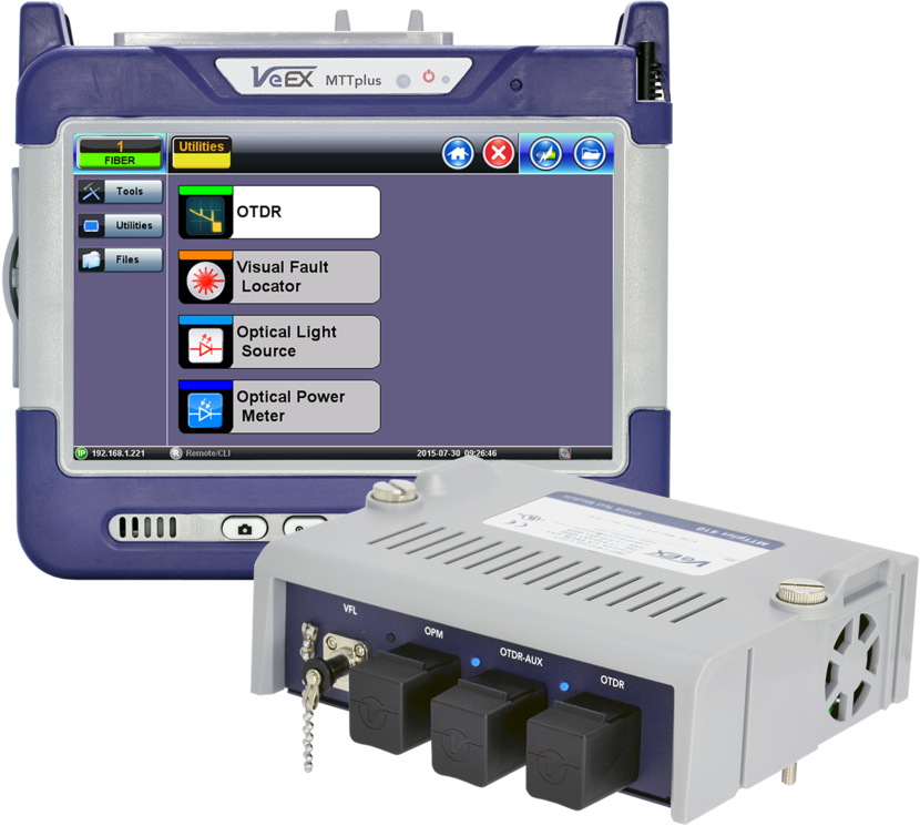 Máy đo cáp quang OTDR VeEX MTTPlus là dòng máy đo được thiết kế theo kiểu khe cắm, gồm thân máy đo MTTPlus + module đo MTTPlus-410+ OTDR, giúp người dùng đo kiểm, đánh giá chất lượng cáp sợi quang: suy hao tuyến quang, điểm đứt, điểm lỗi trong công tác lắp đặt, bảo dưỡng mạng cáp quang. Máy đo OTDR VeEX MTTPlus có thiết kế nhỏ gọn, màn hình màu cảm ứng 7 inch, tích hợp PIN có thời lượng sử dụng dài, phù hợp với công việc trên tuyến hoặc trong phòng thí nghiệm.